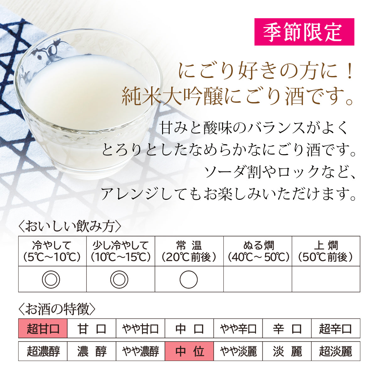 季節限定の「濃いにごり酒」と人気商品「純米にごり酒」の飲み比べセットです。